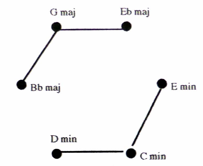 He noted that the Chorales had closely related key schemes: three major and three minor keys, with the major keys separated by the interval of a major third, and the minor keys by a tone.